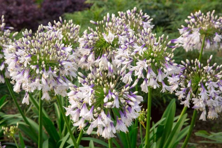 Agapanthus Fireworks (African Lily) is a compact, evergreen perennial boasting huge umbels densely packed with delicate trumpet-shaped flowers which change from dark, violet-blue at the throat to pure white on the petal edges. They sit atop slender stalks that arise from a neat clump of strap-shaped, fresh green leaves. This exquisite dwarf Agapanthus is very suitable for perennial borders or container planting on the balcony, terrace, or patio.