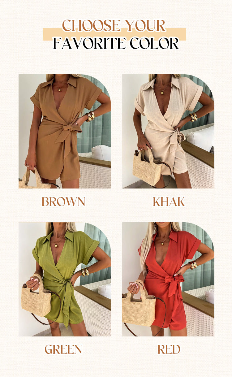 💕Women's Cotton Linen V-neck Jumpsuit - Light, Breathable & Elegant for Every Summer Occasion